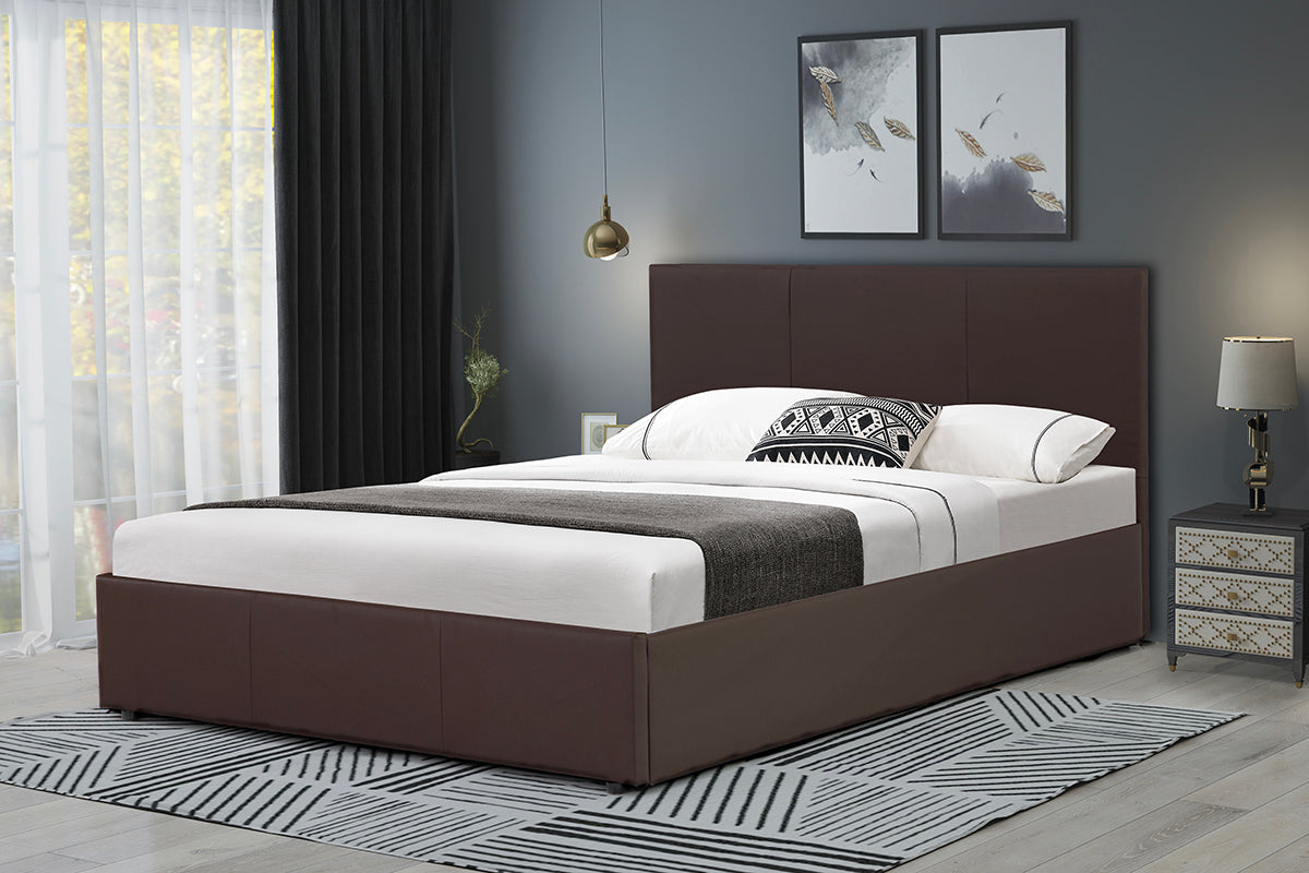 A stylish otto storage bed incorporating a hydraulic gas lift that raises the mattress and base to provide easy and effortless access to useful and spacious storage underneath.